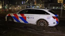 Snelle Audi A6-politieauto komt muurvast te staan in modderig Rotterdam
