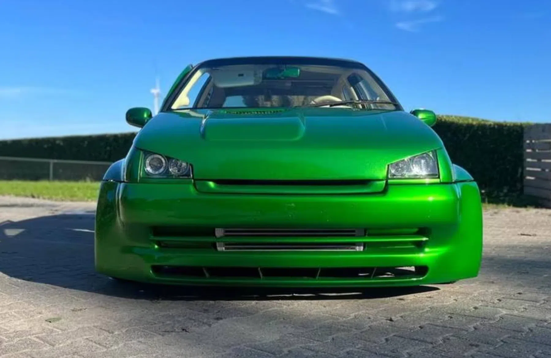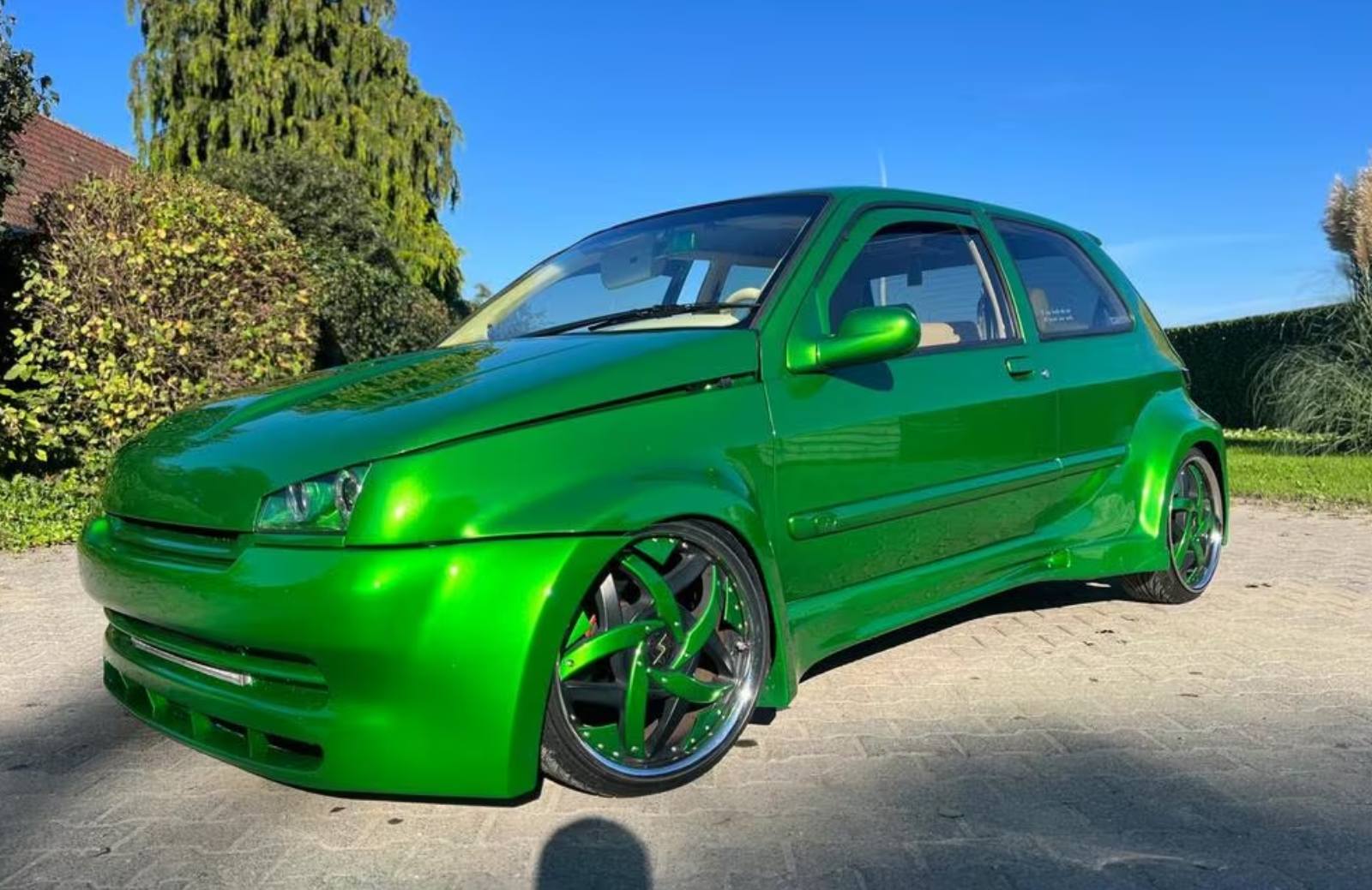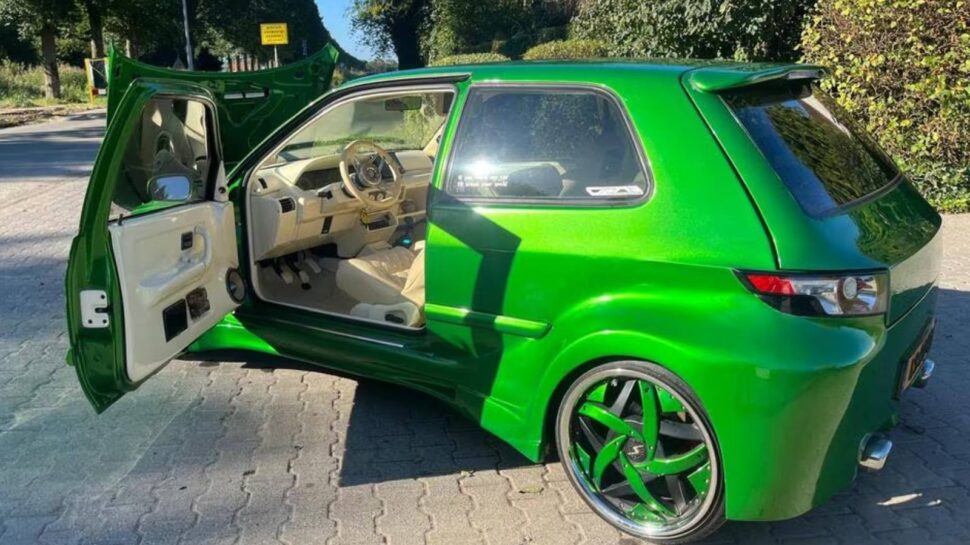 De auto stamt oorspronkelijk uit juli 1995 en is bijna dertig jaar oud op de dag dat dit artikel online komt. Destijds kwam de Franse hatchback naar Nederland met een 1,2-litertje met 54 pk en 90 Nm. Al een idee? We zullen de spanning wegnemen: je kijkt hier naar een zwaar, heel zwaar gemodificeerde Renault Clio RL.