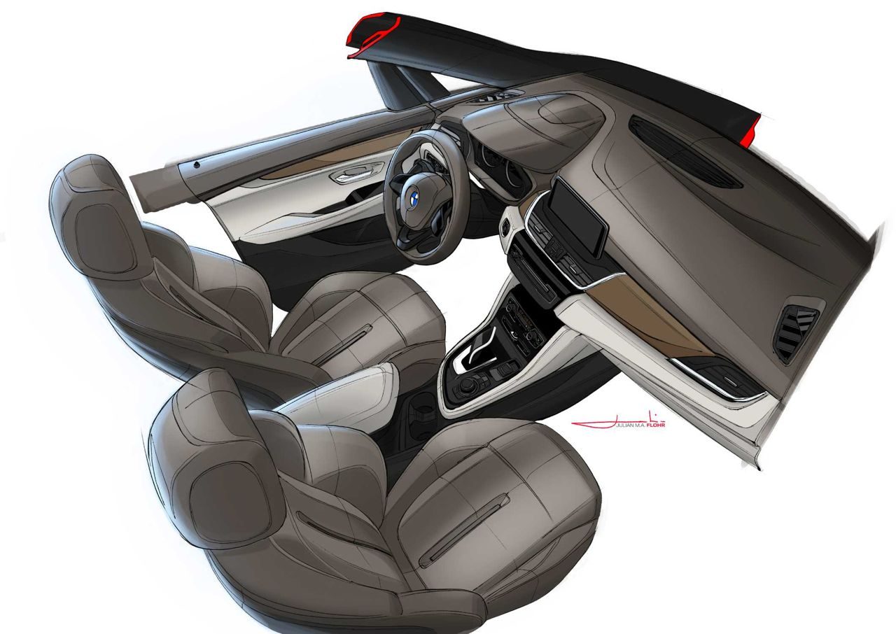 Met de huidige 2 Serie heeft dit model dan ook weinig te maken. Nee, de 4,34 meter lange, 1,8 meter brede en 1,55 meter hoge 2 Serie Active Tourer is een gezapige ruimtewagen met een hoge zit die op MINI-bouwstenen staat. En opgevuld met niet al te dorstige drie- of viercilinder turbomotoren die de voorste wielen aandrijven. FWD wordt immers een steeds belangrijkere markt voor de Duitsers. Niet dat ze van RWD afstappen, het is gewoon een uitbreiding. Een visueel niet zo aantrekkelijke uitbreiding.