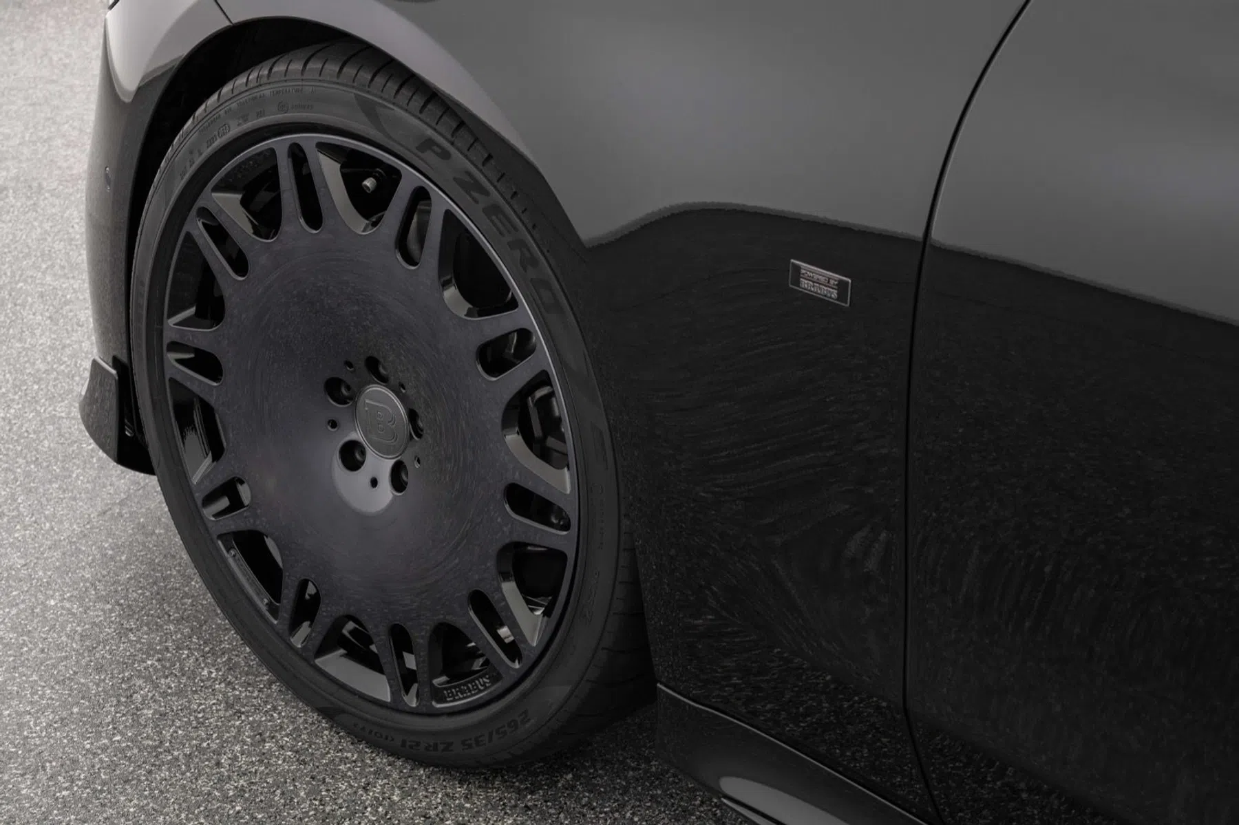 Waar je niet omheen kunt, zijn de 21 inch grote Monoblock-velgen, de M Platinum Edition-wielen om precies te zijn. Ze zijn uiteraard gesmeed en kenmerkend dankzij een 'pannenkoek'-design. Voor zijn ze 9Jx21 (met 265/35 ZR21 banden) en achter 10,5Jx21 (met 305/30 ZR 21 banden). Verder zien we vier ronde uitlaten en zwarte 'Brabus' en 'B50'-badges.