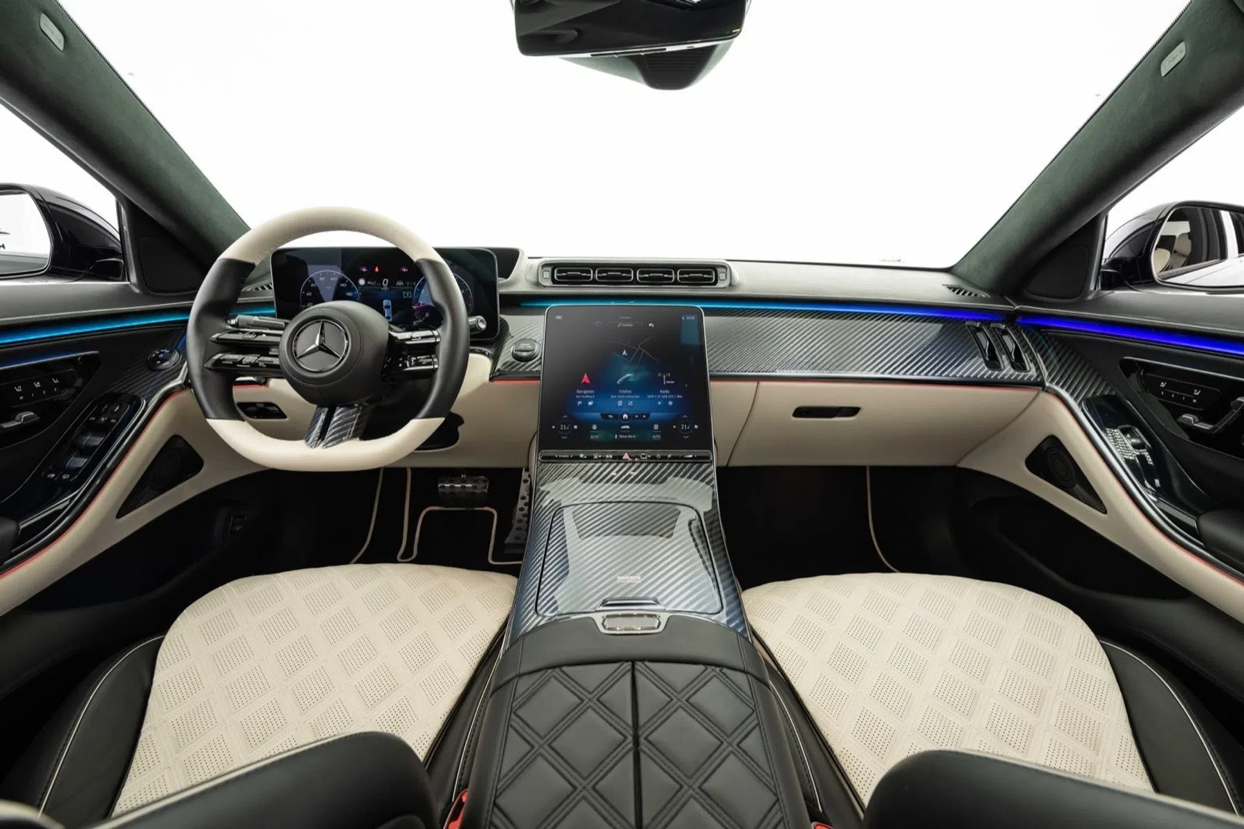 Als laatste is er natuurlijk het interieur. Mercedes is hier zelf ijzersterk in, maar bij de Brabus B50 is het net eventjes wat fraaier gedaan. Waarschijnlijk hebben ze iets meer budget gehad. In dit geval is er gekozen voor een two-tone interieur, maar je kan in principe alles kiezen wat je maar wenst. Leuke touch zijn de Brabus 'B's in de hoofdsteunen. Minder gepast zijn de aluminium sportpedalen. Alsof je een maatpak aan hebt met Nike-sportsokken. Ook het carbon is een beetje misplaatst, maar diverse soorten hout zijn vast mogelijk.