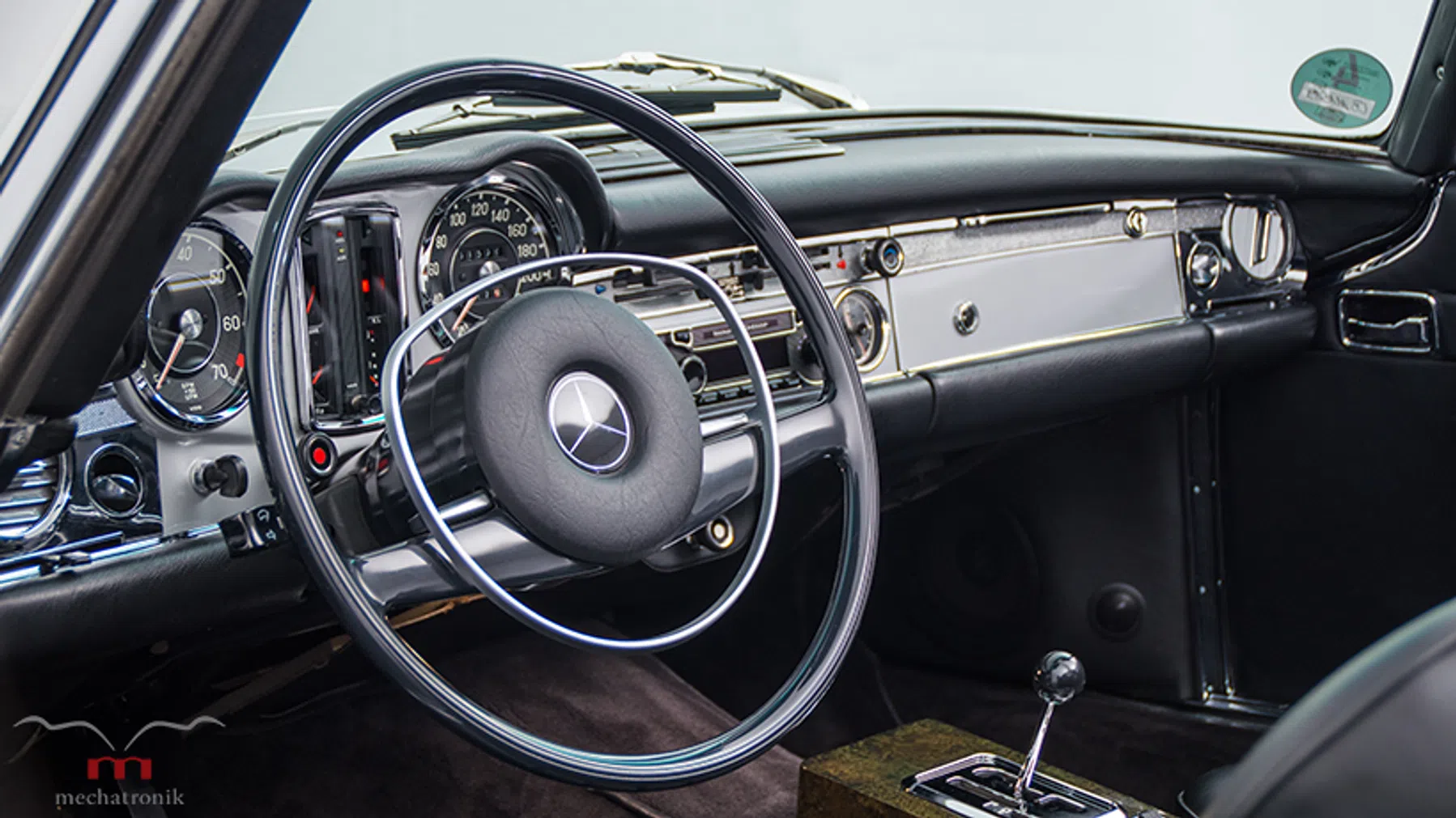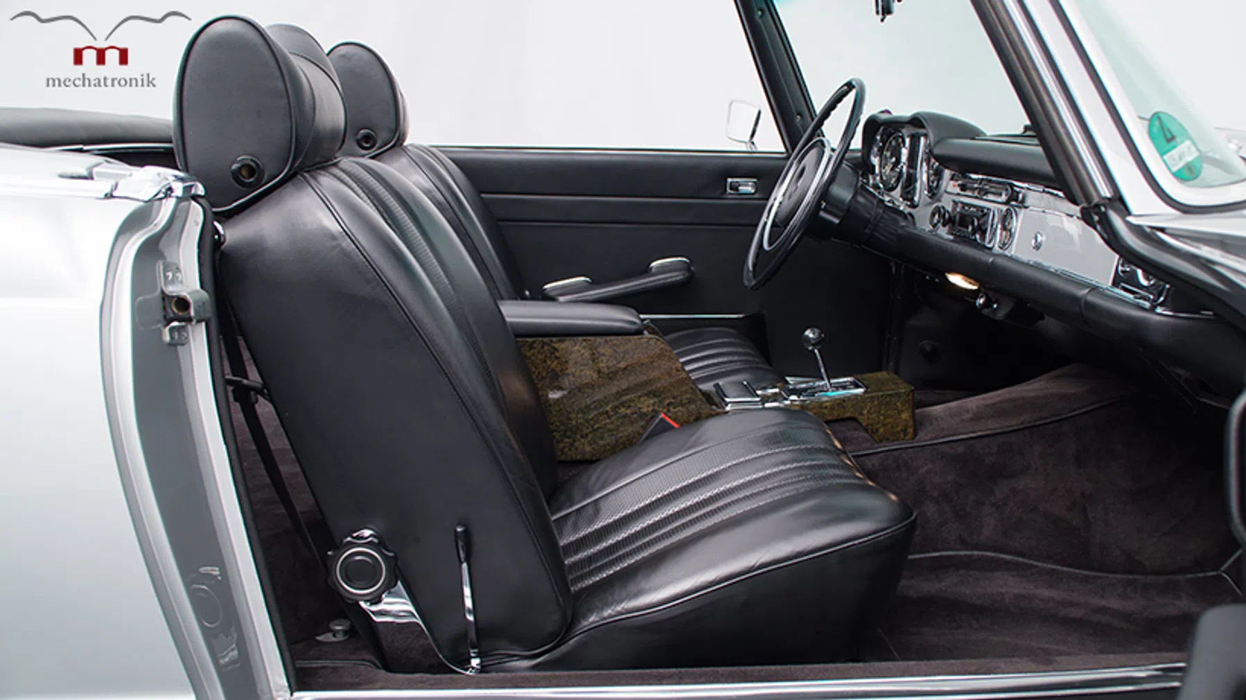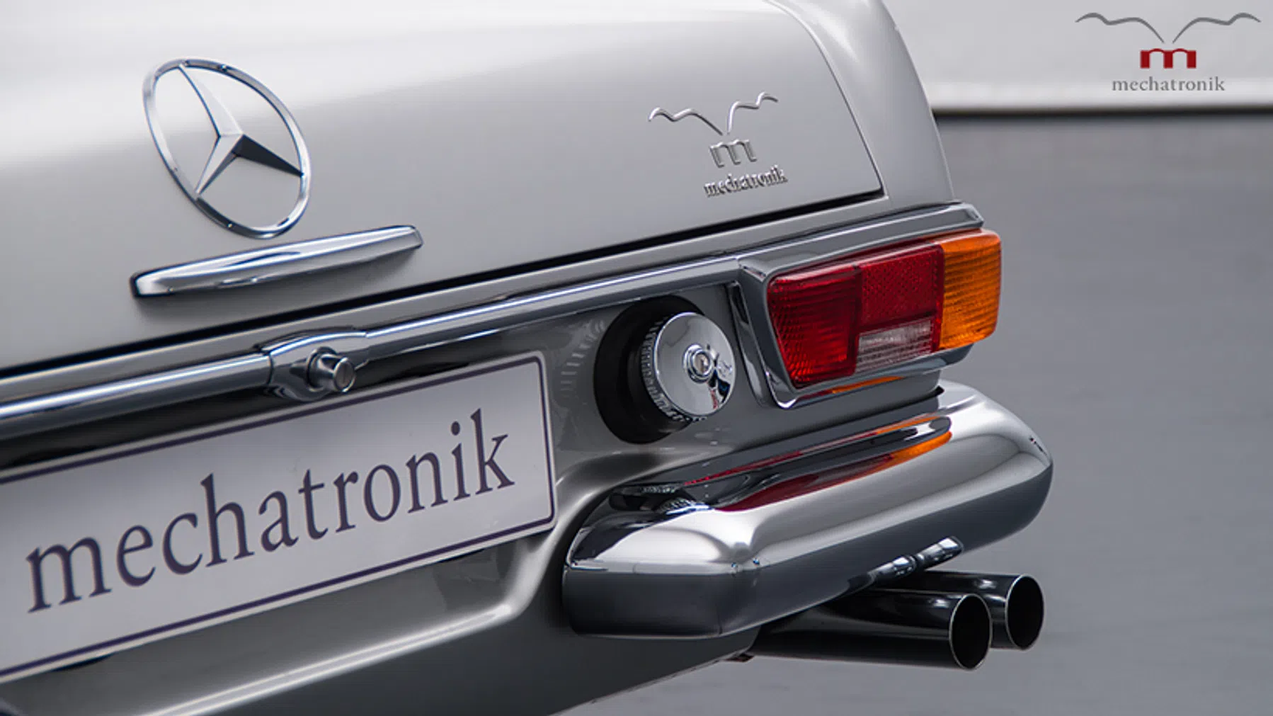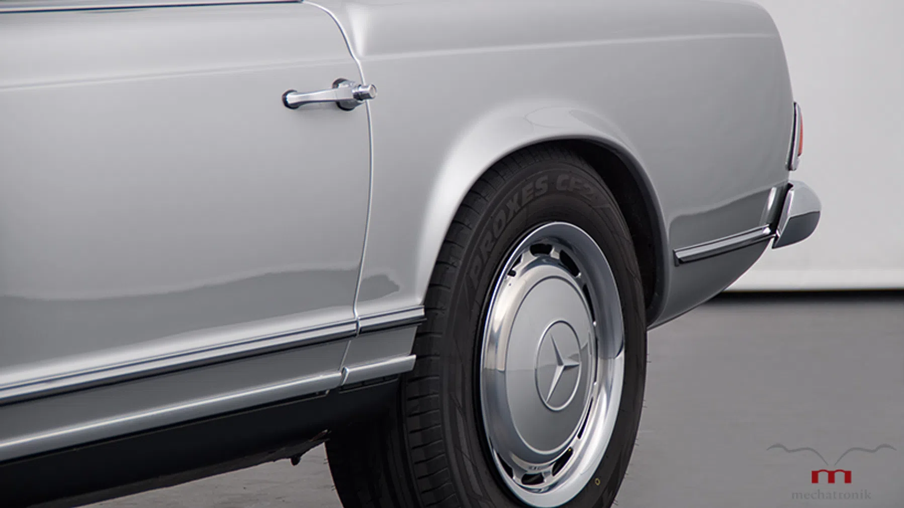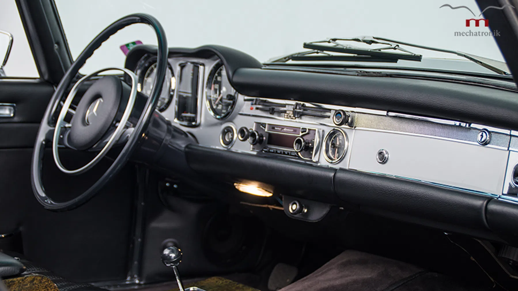 Op het uiterlijk van deze SL, volledig opgeknapt door Mechatronik, valt niets aan te merken. Perfect en volledig origineel. De kenner zal enkel kunnen vallen over de wielen, die iets groter zijn uitgevallen dan Mercedes ze ooit leverde. Het is een subtiele hint naar de aanpassingen die Mechatronik deed. Start de motor en het geluid zal je een veel minder subtiele hint geven.