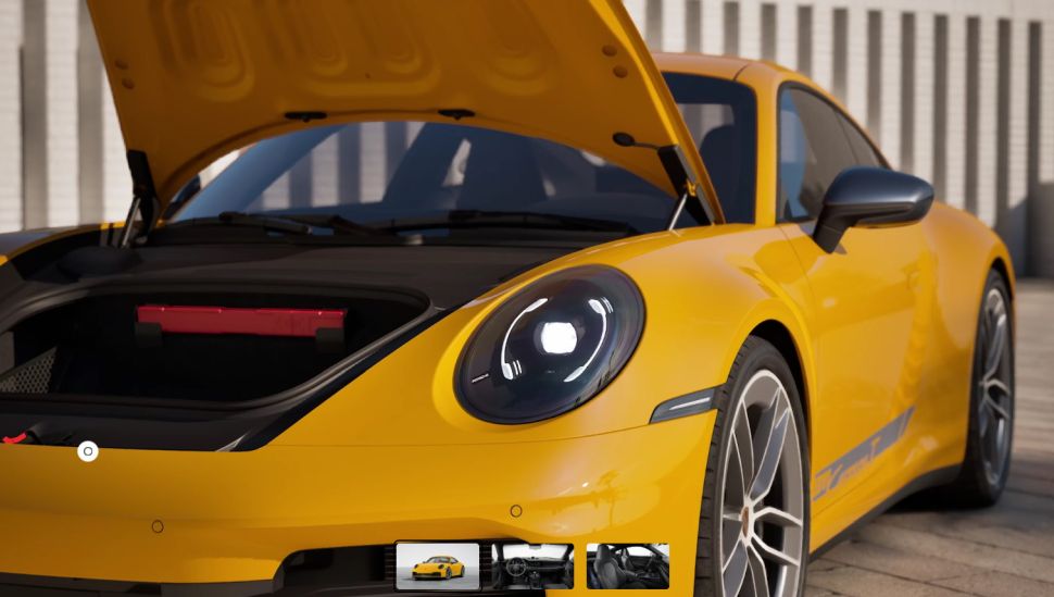 Daarover gesproken, je kan ook de deuren openen en in het geval van de 911 de voorklep openen. Ook kan je uiteraard het interieur bekijken. Niet in 360 graden, want je moet kiezen tussen het perspectief vanuit de bestuurdersstoel of kijkend naar de stoelen. Maar je kan wel weer slepen om even rond te kijken.