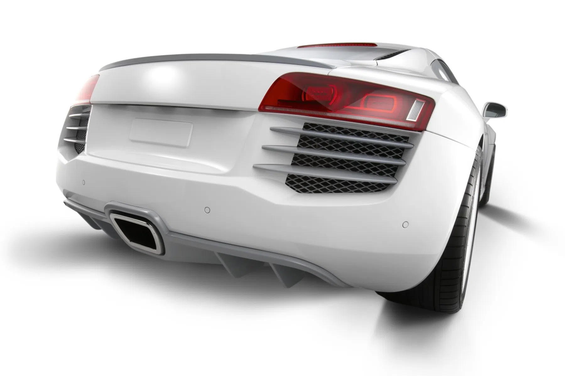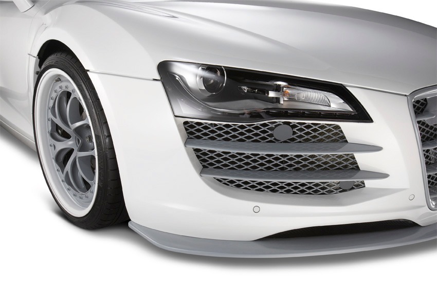 Je kunt de grille en sideblades in carbon laten uitvoeren (7800 Euro), de front splitter (1800 Euro), de achterspoiler met grille (4800 Euro), en de diffuser (3800 Euro). Voor het RVS-uitlaatsysteem rekent Eisenmann 4600 Euro. Met behulp van een 'flap control system' kan het geluid dat er uit je V8 komt met een druk op de knop geregeld worden. Mocht je geen geld hebben voor een R8 V10, maar wel de looks willen, dan bieden de Duitsers voor 1000 Euro een setje ovale pijpjes.