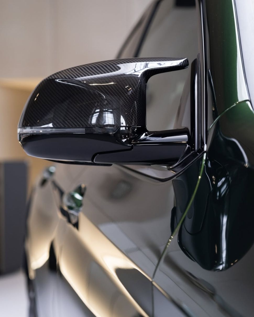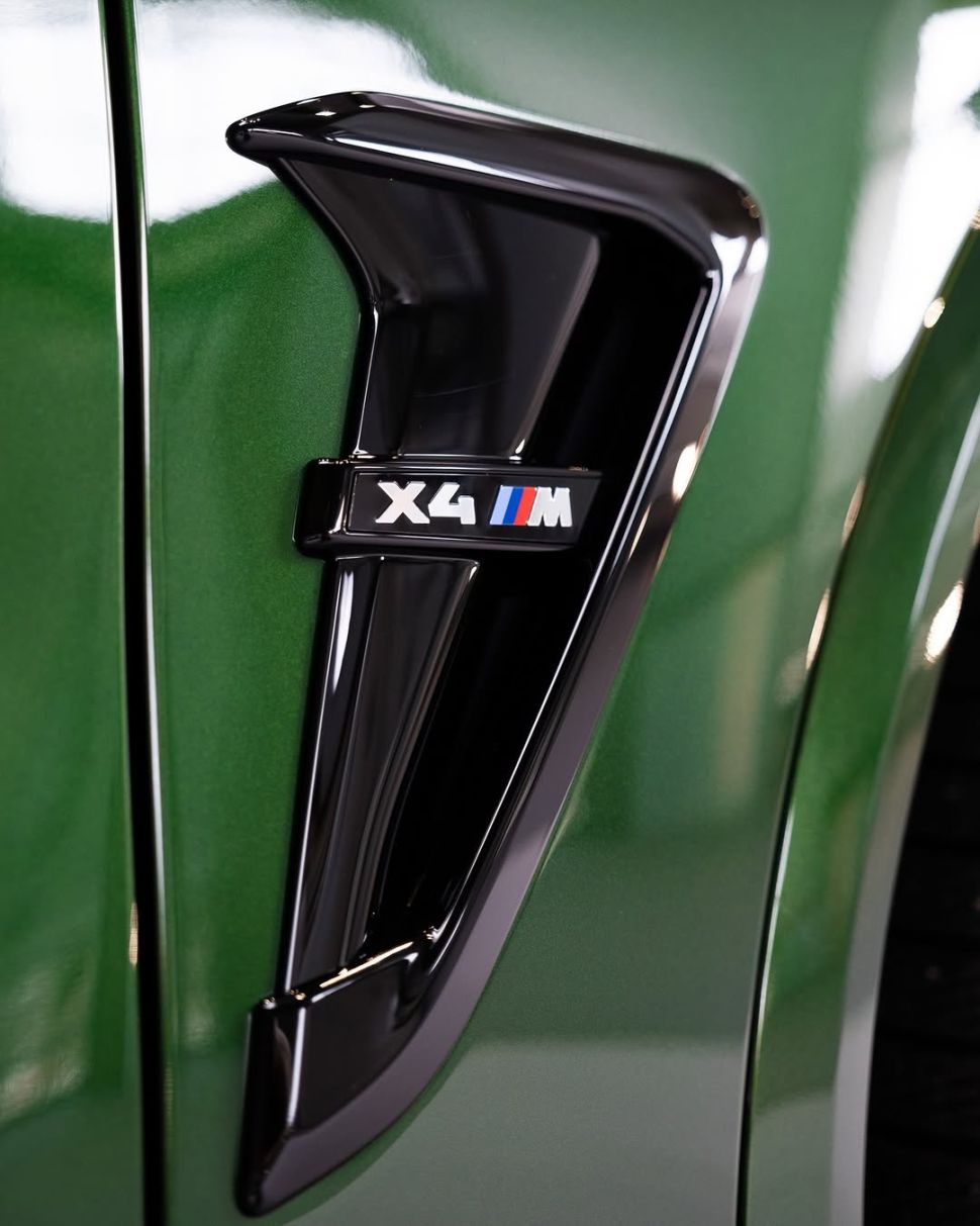 Een klant bestelde de kleur op een nieuwe BMW X4 M (F98). Hij combineerde de groene tint met een Shadowline-pakket inclusief zwarte velgen, wat dan weer niet onze keuze is. Het roodlederen interieur geeft weer een bijzonder contrast: je moet ervan houden, maar uniek is het wel.