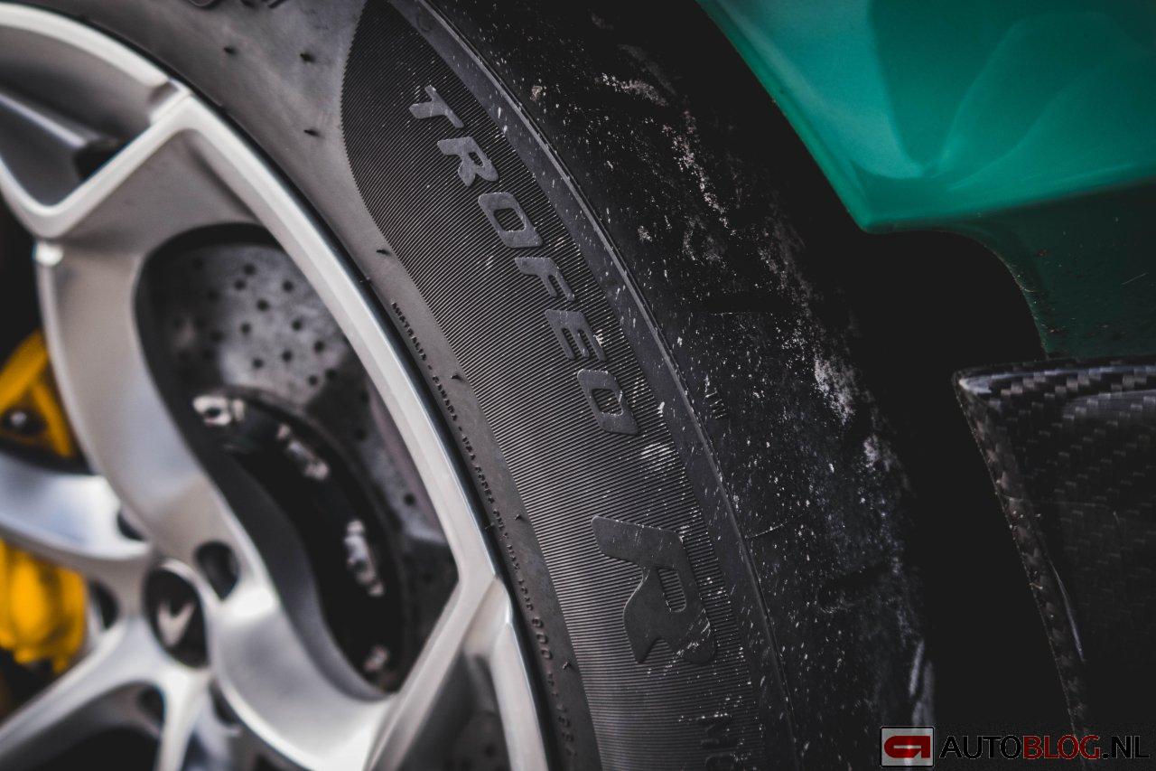 “Onze” 600LT stond op de ontzettende plakkerig Pirelli P Zero Trofeo R banden, waarvan Pirelli zegt: “not recommended for use in very wet track conditions”. Erg nat was het gelukkig niet, maar te koud was het wel. Dit soort banden komt feitelijk alleen maar tot zijn recht hoog zomer op een Spaans, Italiaans of als het echt niet anders kan circuit gelegen in Frankrijk, dan wel het zuiden graag. Met een beetje temperatuur komen semislicks tot leven, met een koude temperatuur wordt het gemene loeders.