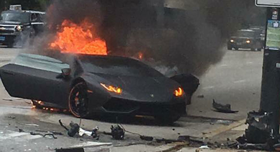 (De Lambo werd geraakt door een Lincoln MKS, geluk bij een ongeluk is dus dat de wereld ook verlost is van zo’n misbaksel)