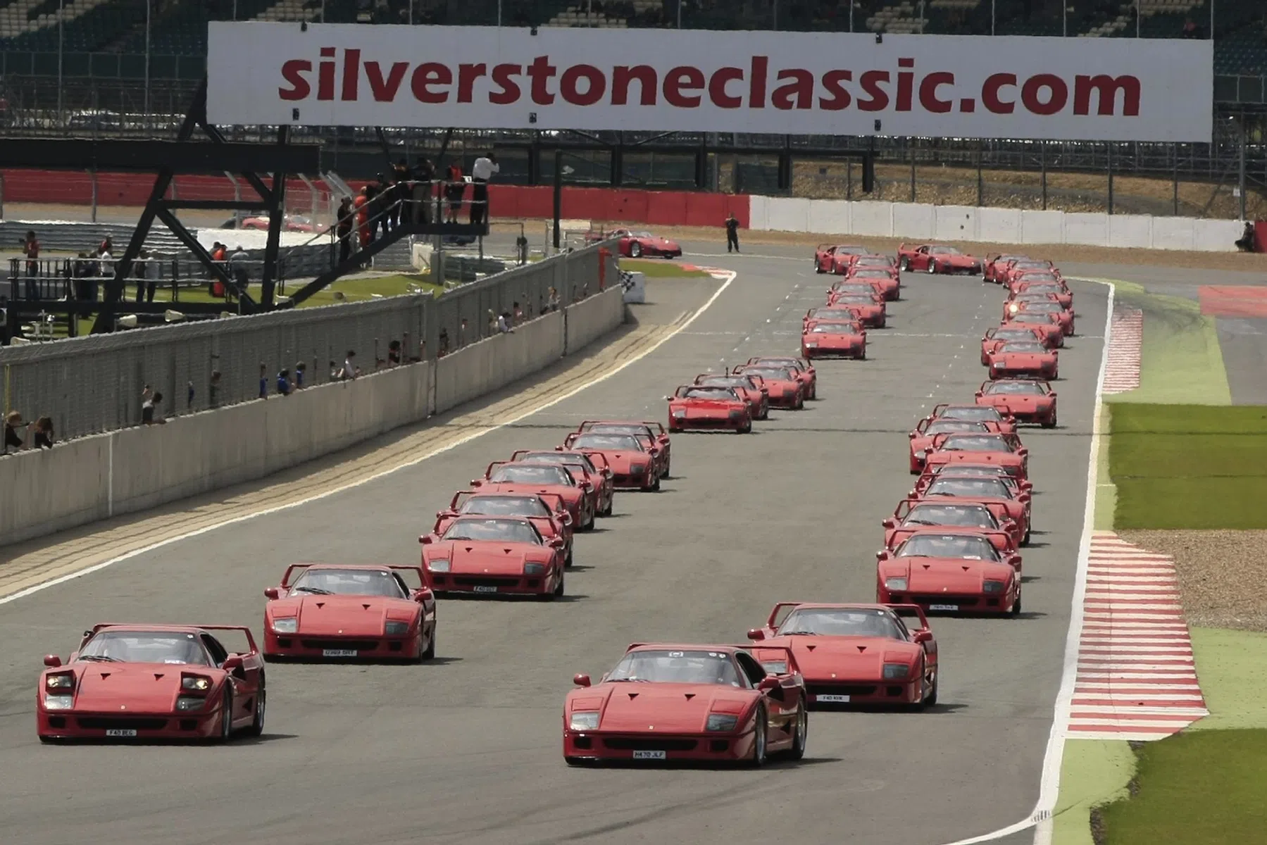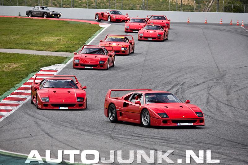 Sinds zijn introductie in 1987 is men het er over eens: de F40 staat zijn mannetje op het circuit. Een relatief kale auto van kevlar, koolstofvezel en aluminium die nooit om vermogen verlegen zit - 495 pk uit een 2936 cc V8 met twee turbo's - doet het daar logischerwijs erg goed. Zeker de F40 Competizione. De meeste kans heb je om ze te circuitspotten tijdens een evenement van Ferrari zelf, een trackday of iets dergelijks. Want Ferraristi zijn dol op optochten. Onlangs gingen er dan ook 60 tegelijk het circuit van Silverstone op.