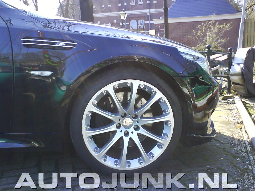 Dacht eerst aan een gewone M5, maar omdat er een S-embleem achterop zit en er toch ietwat andere bumpers op zitten dacht ik aan Hartge. Jammer genoeg is het waarschijnlijk gewoon een bumperkit, want het interieur is niet van Hartge…