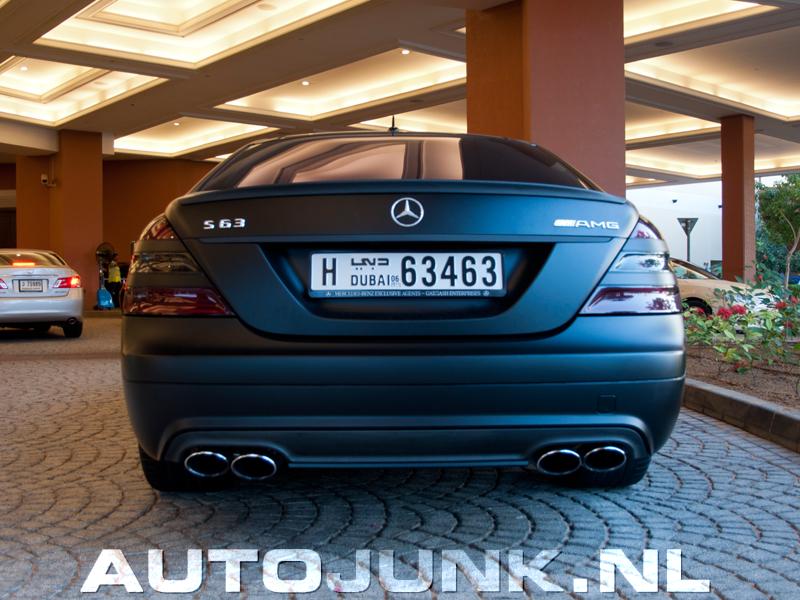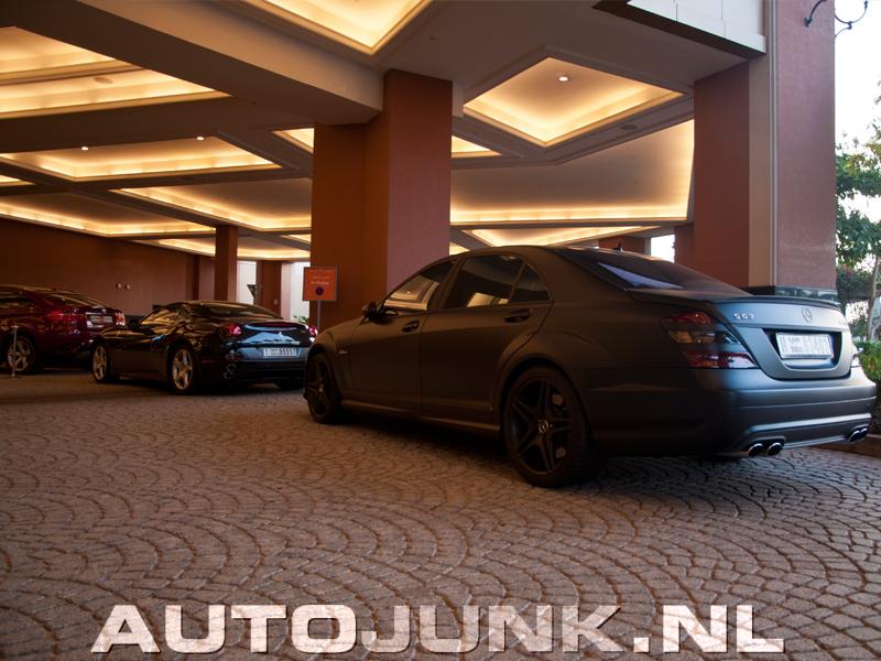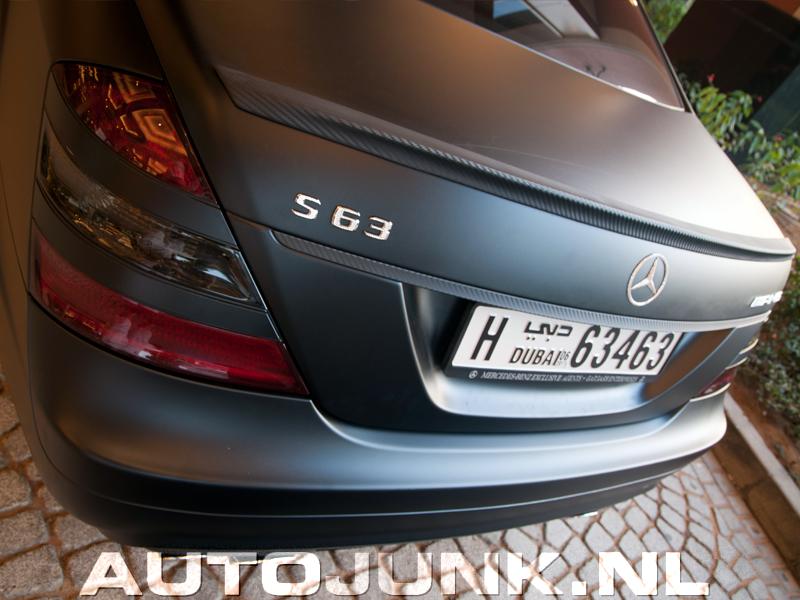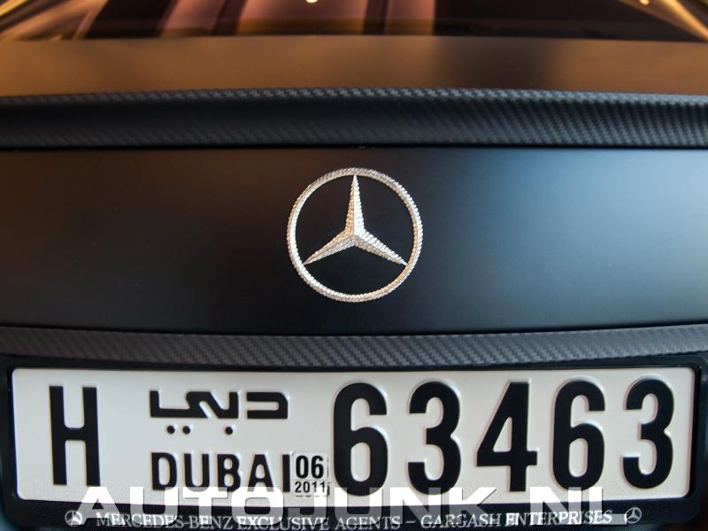 Zoo, stond daar ineens een matzwarte S63 AMG! Ik stond met nog meer verbazing te kijken toen ik zag dat alle logo's in diamant zijn uitgevoerd! Het kan niet op in Dubai!