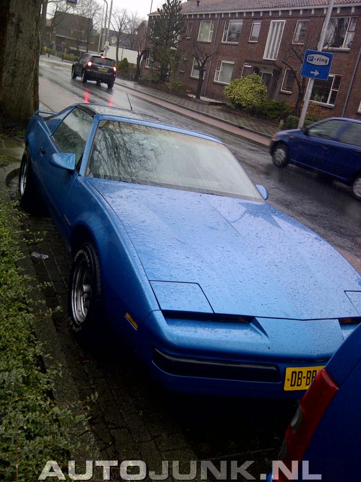 Mooie, blauwe Pontiac Firebird uit 1987 gespot in Lisse aan de Hyacintenstraat. Alleen 1 minpuntje: de schoorstenen achter zin not done voor een 170pk sterke musclecar..