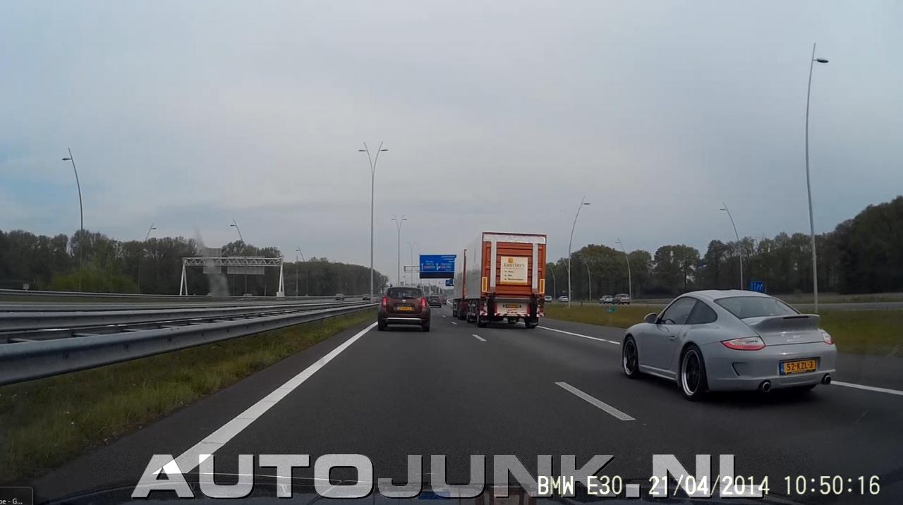 Screenshotje van de dashcam, gewoon in het wild op de A2 bij Eindhoven. Een Porsche 911 Sport Classic!