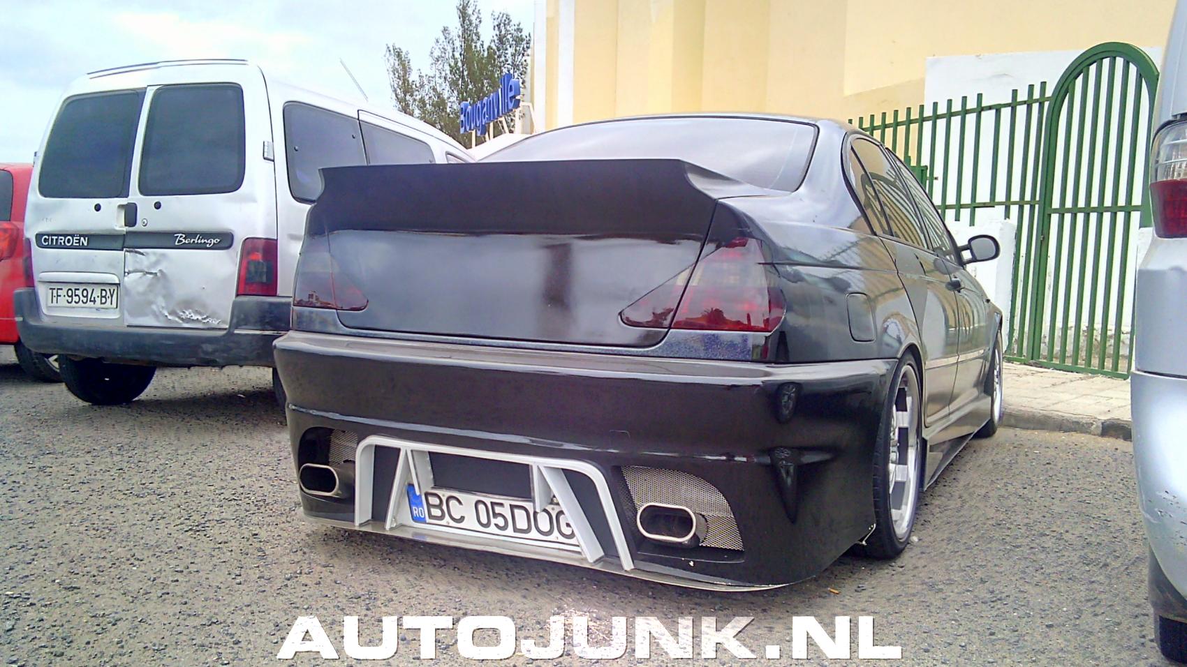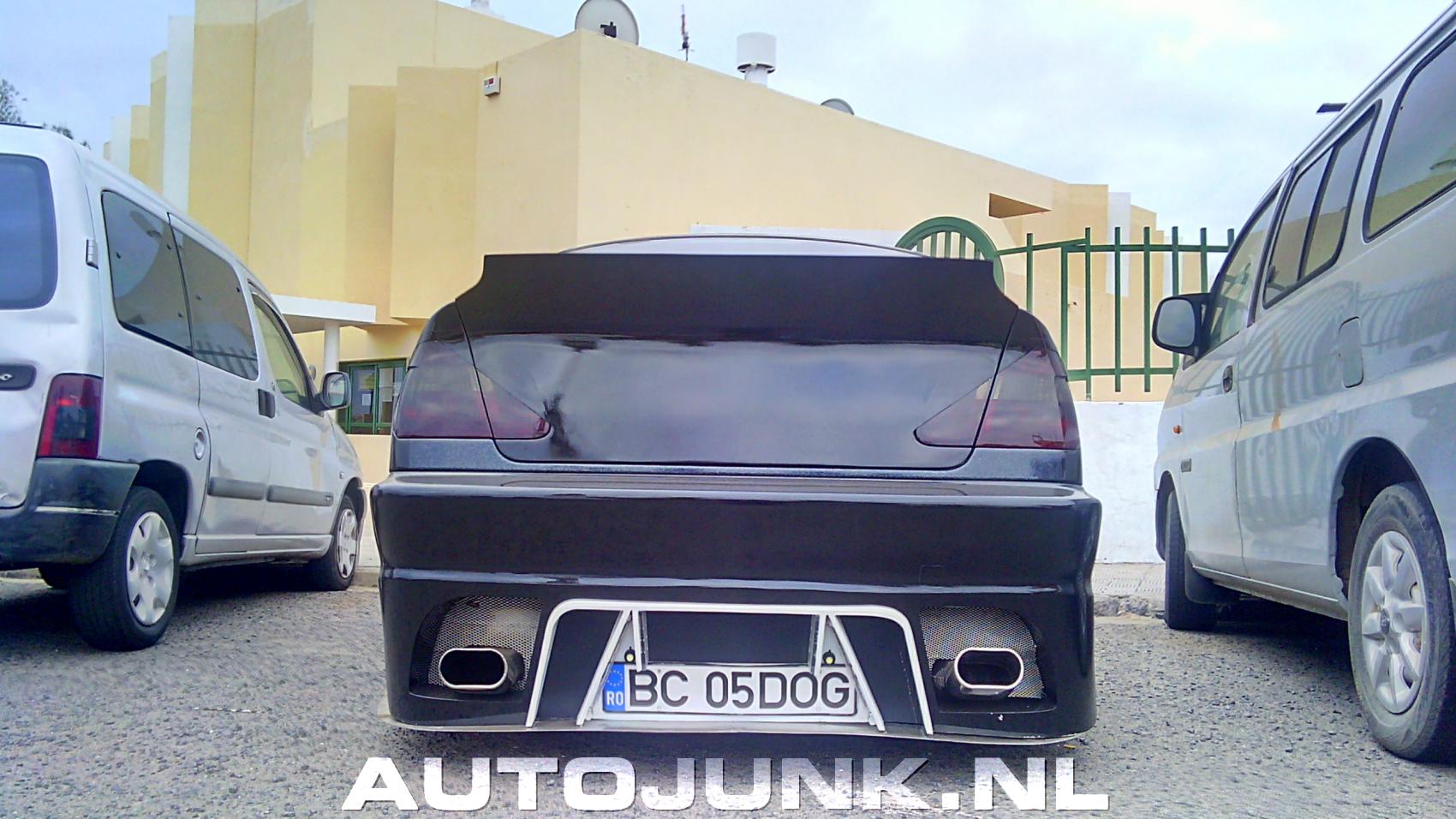 overdreven grote uitlaten en belabberd slecht gewrapd. De roosters op de 'spoiler' zijn nep.