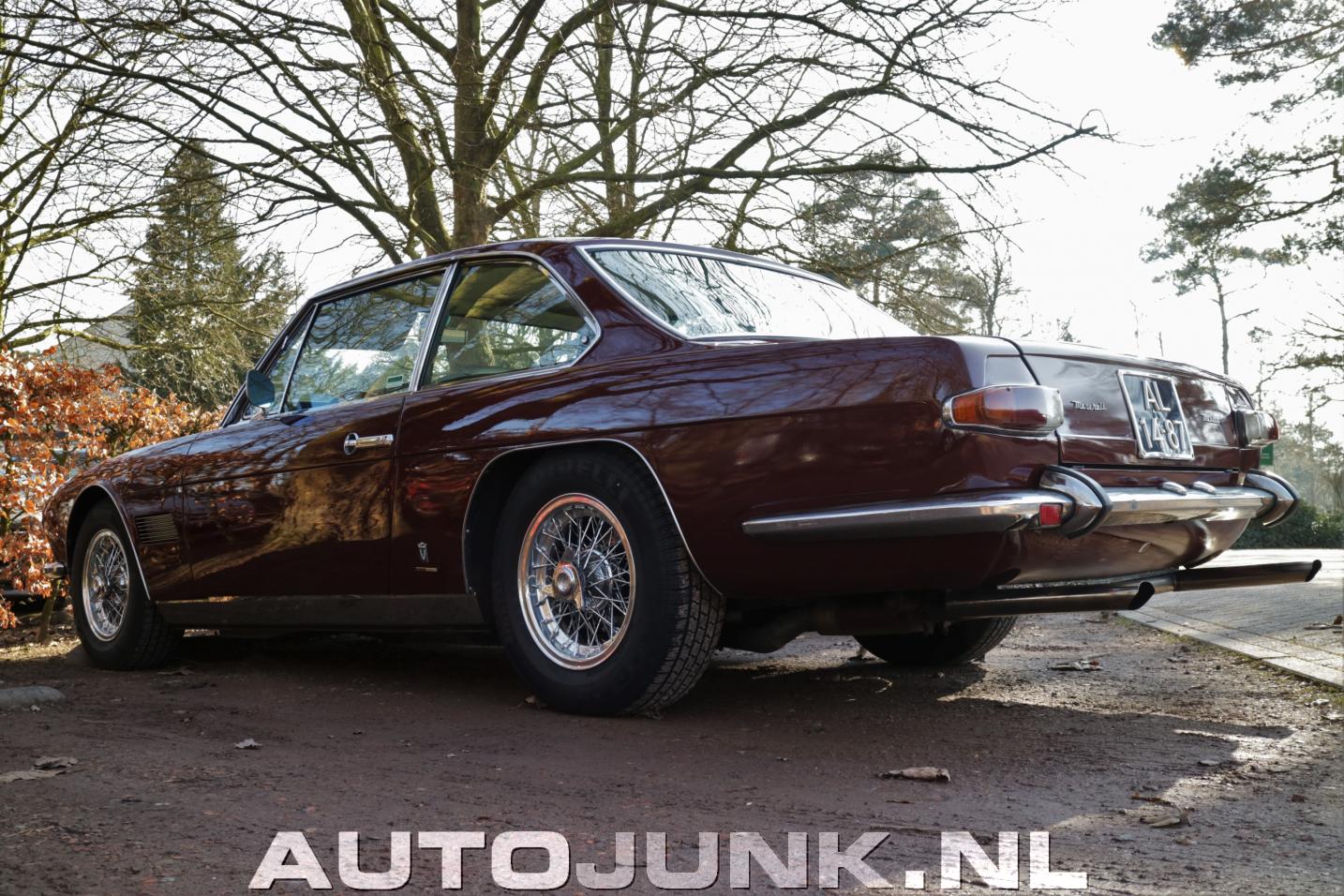 Gewoon schitterend, deze klassieke Maserati. Opvallend onbeschofte uitlaatpijpen waaruit een geweldige onbeschofte V8-herrie komt.