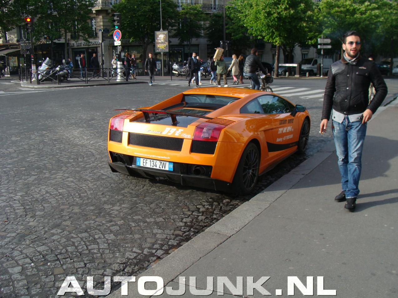 Afgezien van dat €89 voor 25 minuten in de drukke straten van Parijs rijden in een Lambo al oplichting is, helpt het ook niet dat de kentekenplaten er Italiaans uitzien, maar een Franse combinatie hebben. Gespot in Parijs, Frankrijk.