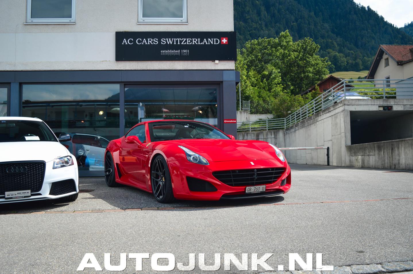 #Eurotrip2k16 – Leuk spul in Zwitserland! Bij AC Cars Switzerland in Chur deze felrode getunede Ferrari California T Novitec Rosso N-Largo gezien.