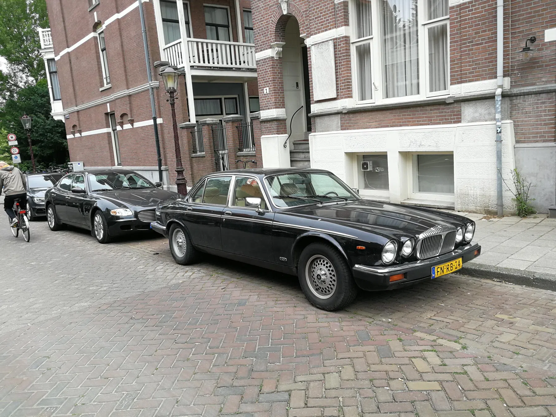 Een Europese stijlcombo, hier in Oud-Zuid nabij t Vondelpark. We hebben een Quattroporte en een Daimler Double Six anderzijds. 2 wagens die ook in Oud-Zuid geliefd zijn. En de vraag die er toe doet is natuurlijk: wat kiezen jullie?