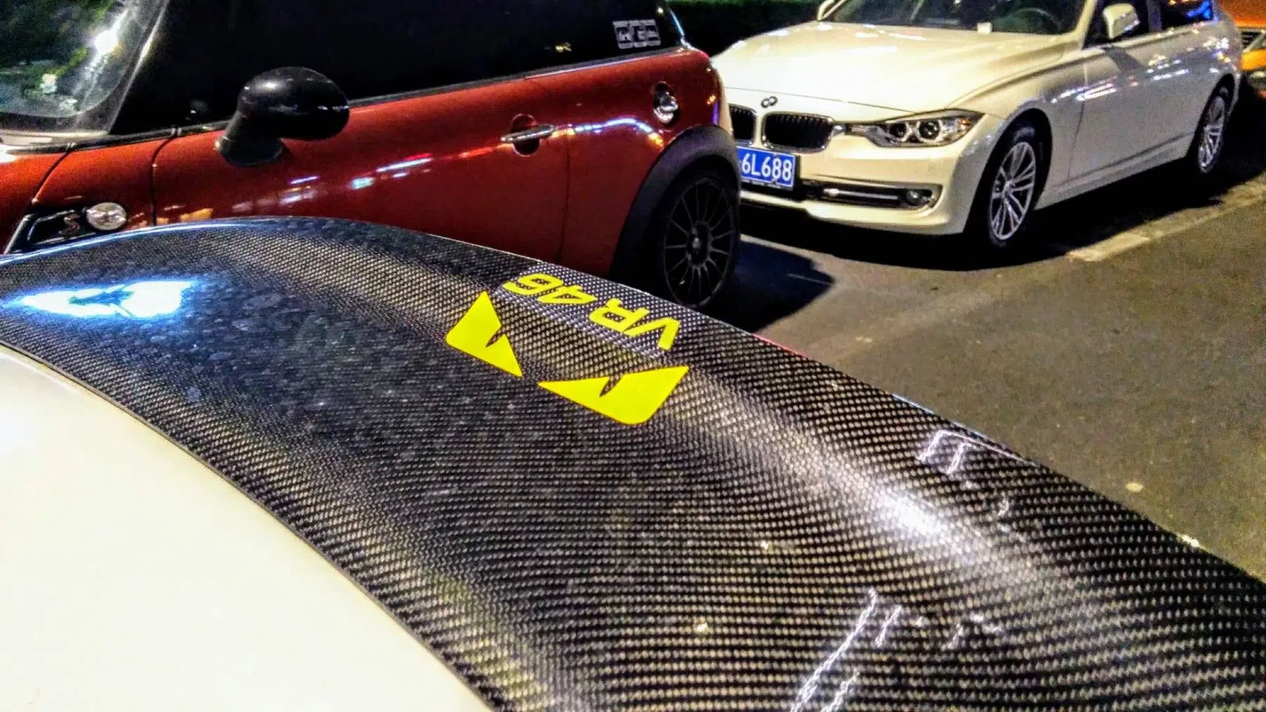 Normaal liggen er schattige knuffeltjes op de hoedenplank. Deze had een cool ding op de hoedenplank liggen.
