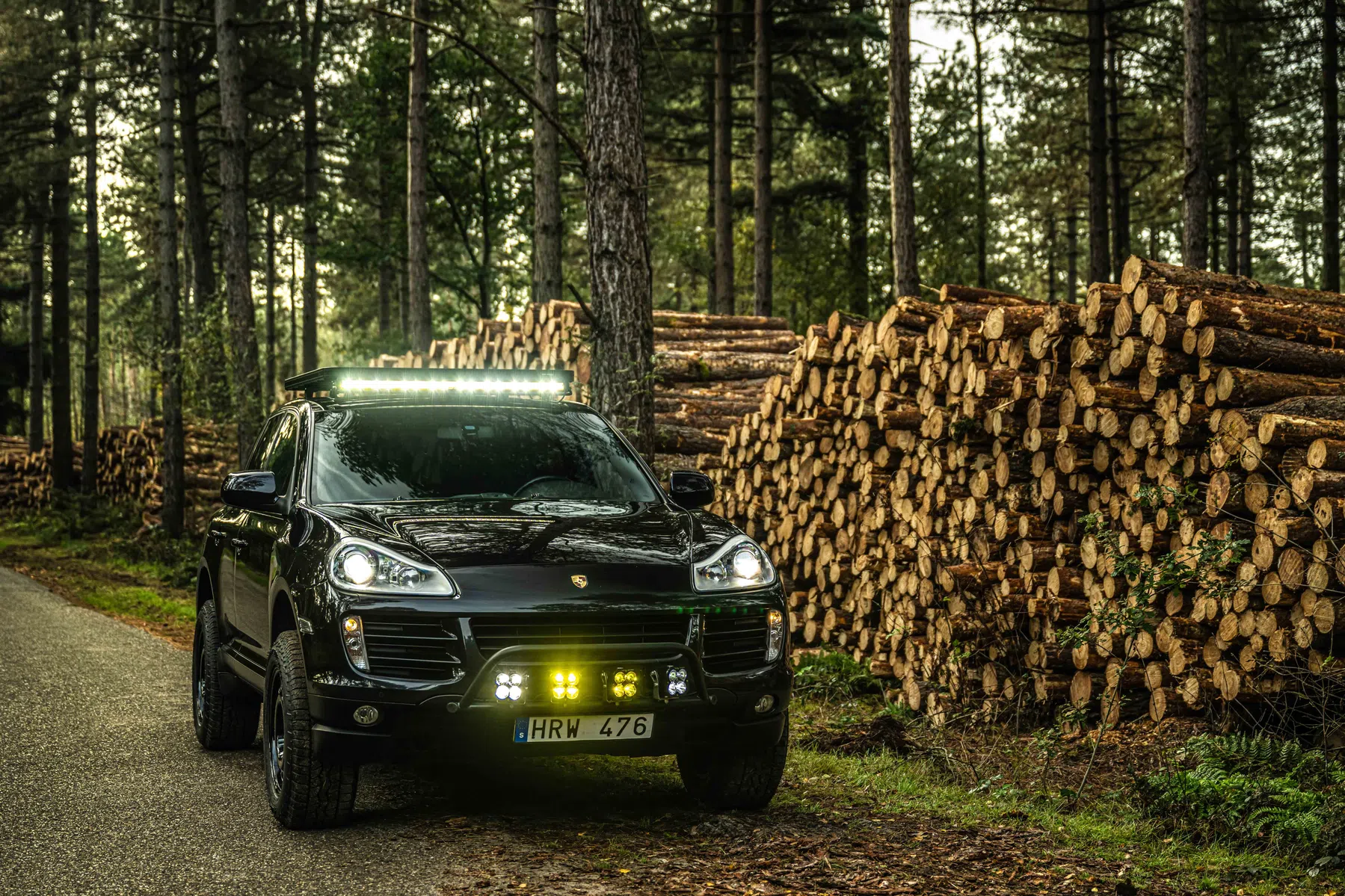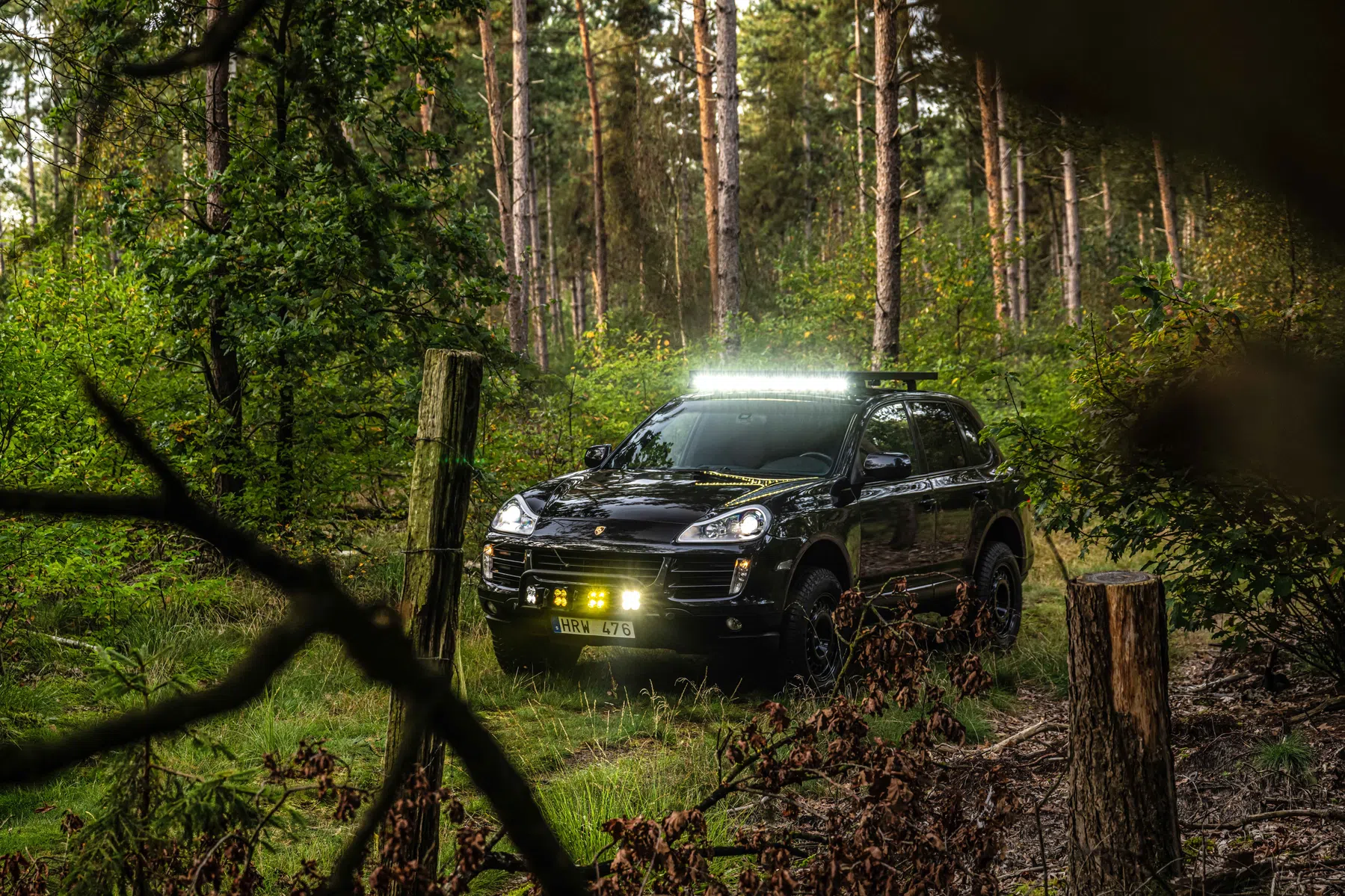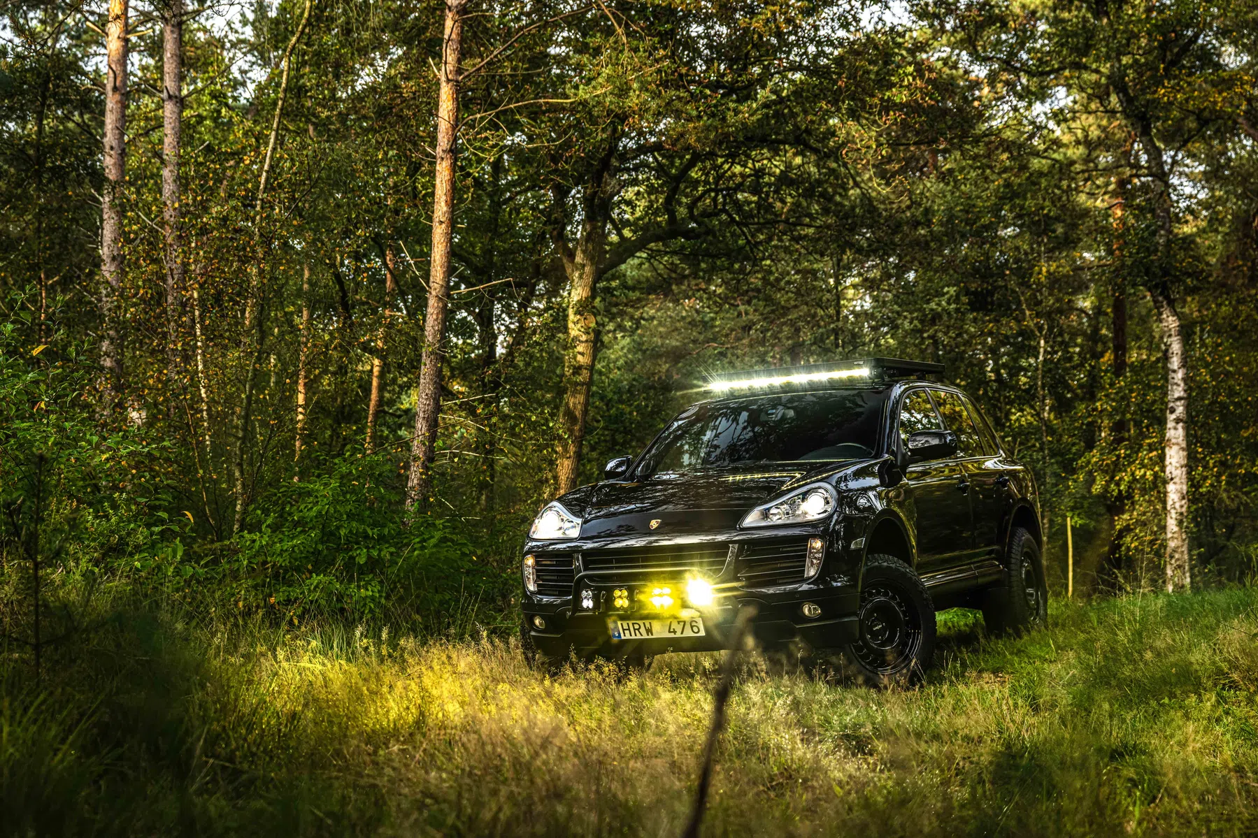 De auto is voorzien van wat extra licht voor in Zweden.